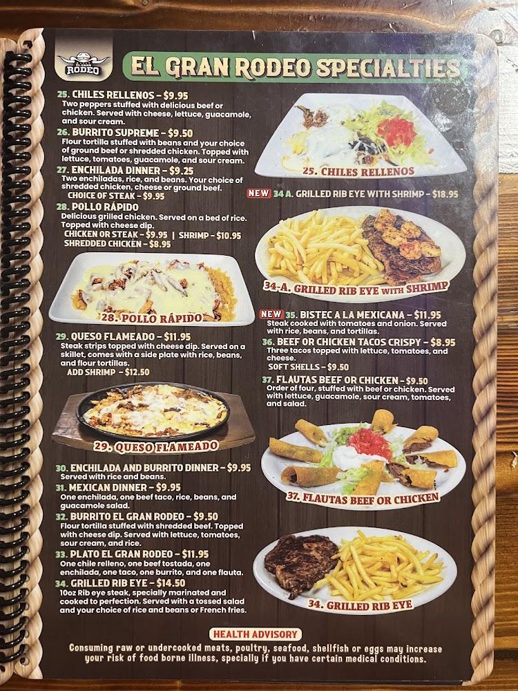 El Gran Rodeo's menu showcases the rich flavors of Mexico through diverse dishes. With over 200 options, there's something for everyone. Guests can enjoy appetizers like cheesy nachos or classic quesadillas, paving the way for mouthwatering entrees. Taco plates, enchiladas, and burritos reflect the heart of authentic Mexican cuisine.
